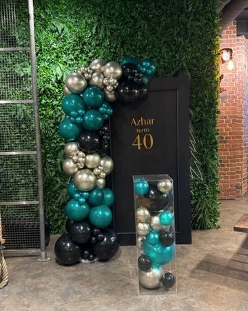 Includes Balloon Wall, Light up numbers and cake plinth.